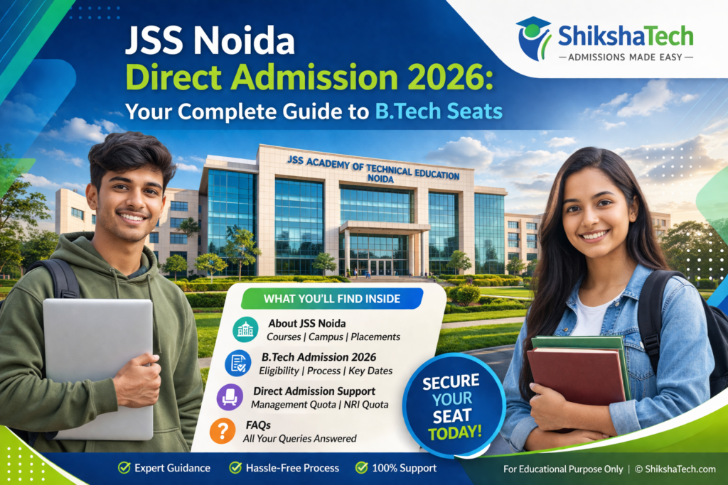 Students looking for JSS Noida direct admission, management quota admission, or NRI quota admission 2026 can connect with ShikshaTech for expert guidance. We provide complete support including college & branch selection, eligibility checks, documentation, and end-to-end admission assistance, ensuring a smooth and stress-free process.