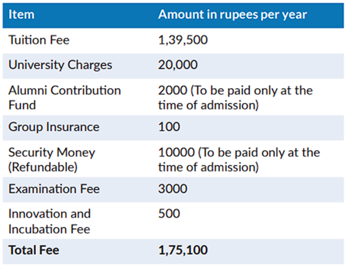 | B.Tech Program | Annual Tuition (₹) | Total Annual Fee (incl. charges) (₹) |