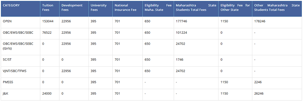 For international applicants, PCCOE Pune NRI quota admission follows a separate fee structure under supernumerary seats.