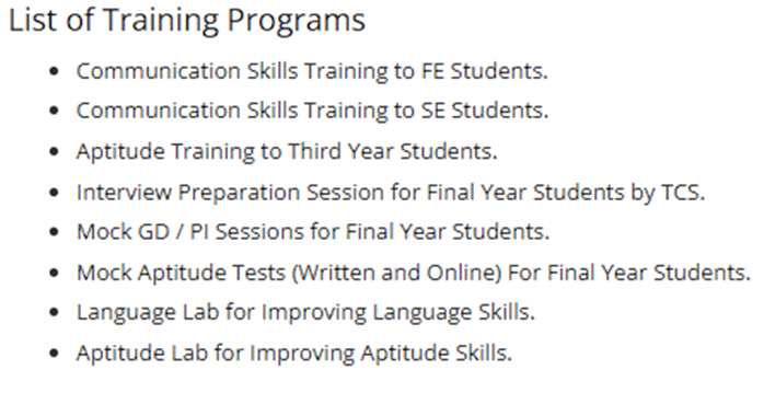 PCCOE adopts a proactive and comprehensive approach to preparing students for campus placements. Rather than waiting passively for companies to arrive, the institute organizes targeted placement training programs aimed at sharpening both aptitude and technical skills. Regular workshops are conducted to help students master essential areas such as quantitative reasoning, problem-solving, and domain-specific knowledge. Soft skills development is also a major focus, with sessions dedicated to improving communication, teamwork, and interview performance.